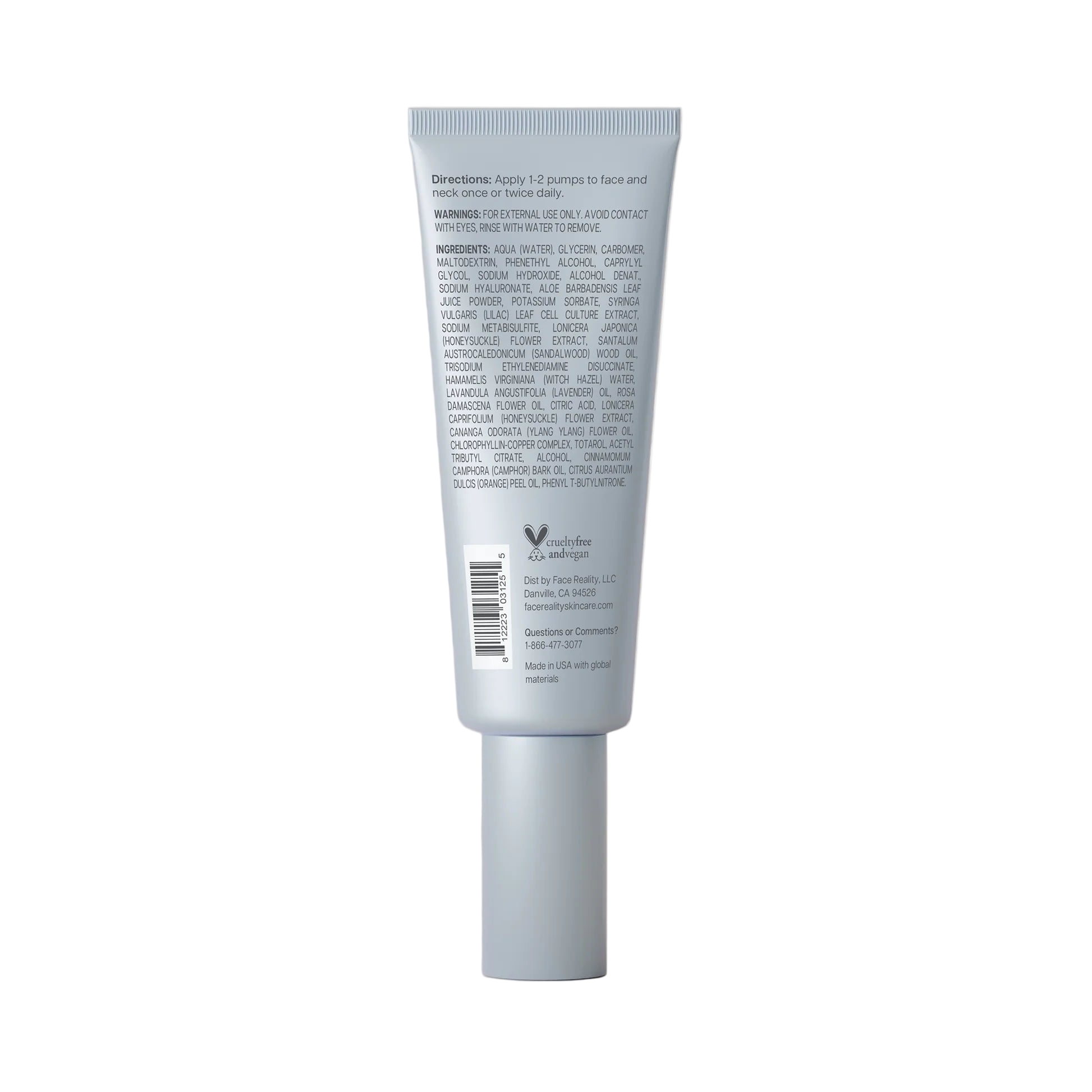 Aqua (Water), Glycerin, Carbomer, Maltodextrin, Phenethyl Alcohol, Caprylyl Glycol, Sodium Hydroxide, Alcohol Denat., Sodium Hyaluronate (L), Aloe Barbadensis Leaf Juice Powder, Potassium Sorbate, Syringa Vulgaris (Lilac) Leaf Cell Culture Extract, Sodium Metabisulfite, Lonicera Japonica (Honeysuckle) Flower Extract, Santalum Austrocaledonicum (Sandalwood) Wood Oil, Trisodium Ethylenediamine Disuccinate, Hamamelis Virginiana (Witch Hazel) Water, Lavandula Angustifolia (Lavender) Oil, Rosa Damascena Flower Oil, Citric Acid, Lonicera Caprifolium (Honeysuckle) Flower Extract, Cananga Odorata (Ylang Ylang) Flower Oil, Chlorophyllin-Copper Complex, Totarol, Acetyl Tributyl Citrate, Alcohol, Cinnamomum Camphora (Camphor) Bark Oil, Citrus Aurantium Dulcis (Orange) Peel Oil, Phenyl t-Butylnitrone