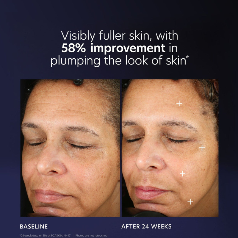 Visibly fuller skin, with 58% improvement in plumping the look of the skin*